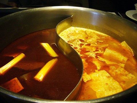 我們點的是麻辣鍋+椰香咖哩鍋湯底的鴛鴦鍋