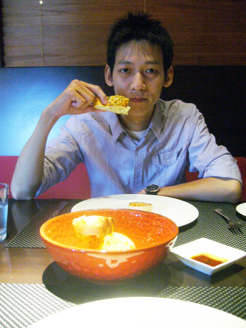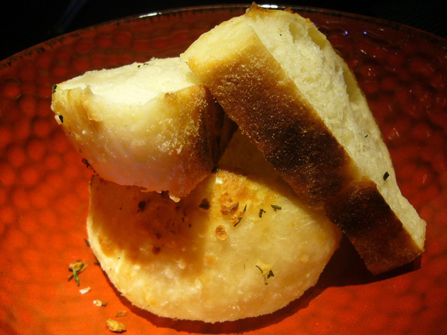 一上桌,現烤的麵包香氣十足,其實不用沾醬就很好吃了,