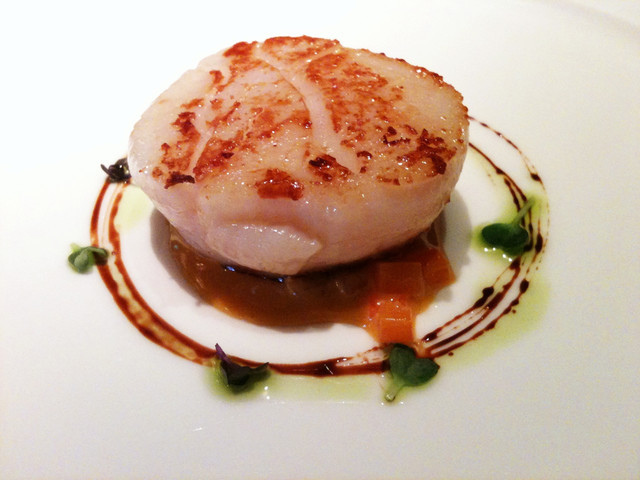 炙燒北海道干貝,直徑長達6公分的北海道干貝,整個很鮮甜,