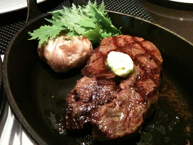 整顆現烤的大蒜,去除了辛辣的口感,吃起來鬆軟綿密,搭配牛排真的好好吃啊!