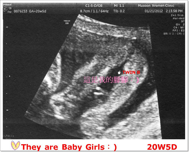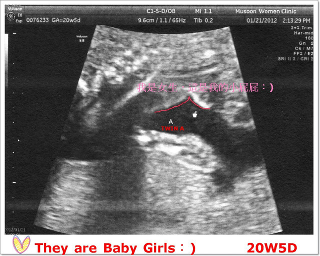 後來醫生震了震我的肚子,讓B寶寶動一動換換位置,結果答案揭曉啦~B寶寶也是女娃喲♥