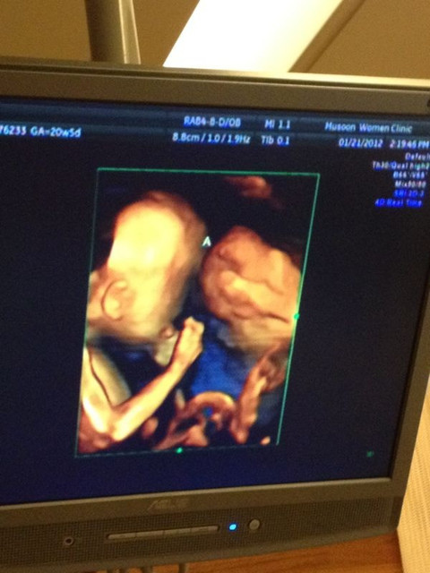 其實就跟我之前在頸部透明帶產檢時一樣,醫生宣布,有95%確定寶貝們是女孩♥